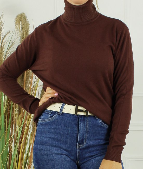 Dames col trui Roba-effen coffee donker bruin-fijngebreid-maat L/XL-koltrui-coltrui
