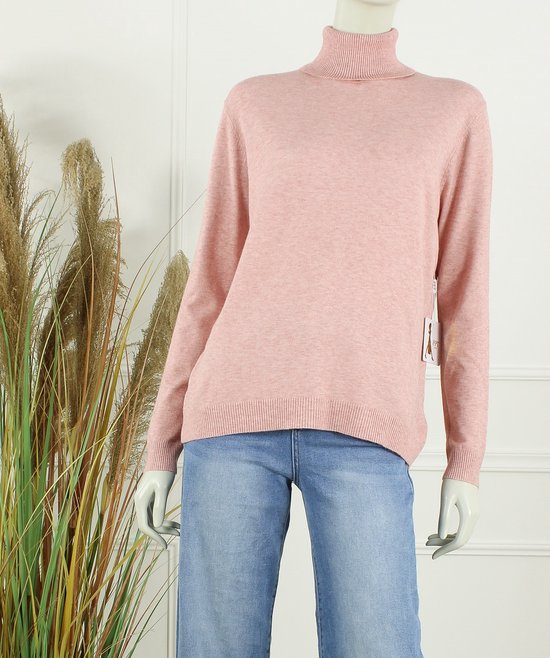 Dames col trui Roba-effen licht roze melee-fijngebreid-maat L/XL-koltrui-coltrui