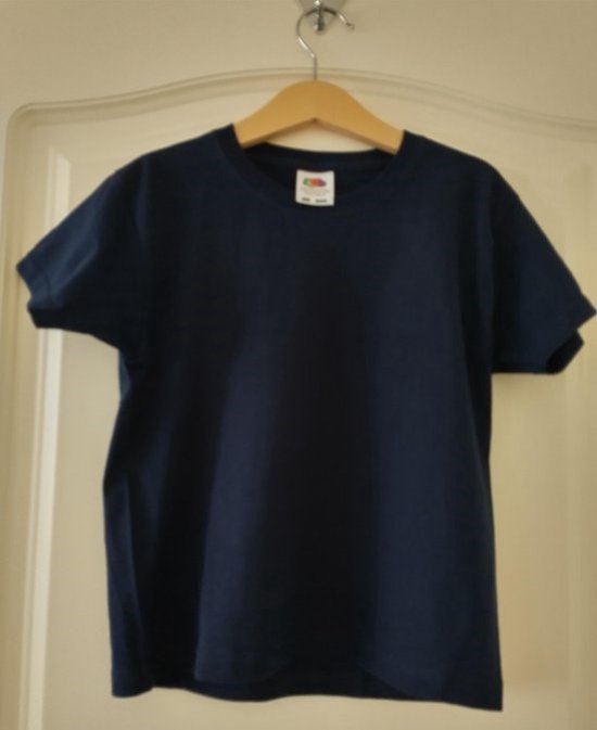 Jongens T-shirt in de kleur effen donkerblauw met korte mouwen en een ronde hals. Gemaakt van 100% katoen. Fijn om te dragen. Geschikt voor 3-4 jaar. Maat 98/104. Lengte 43 cm/Breedte 29 cm.
